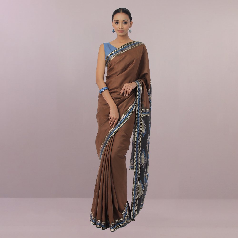This perfect saree has been made with expertise kantha work on the traditional silk fabric. The saree provides the best of comfort and gracefulness with Kantha stitch with cathechu as black at paar anchol.