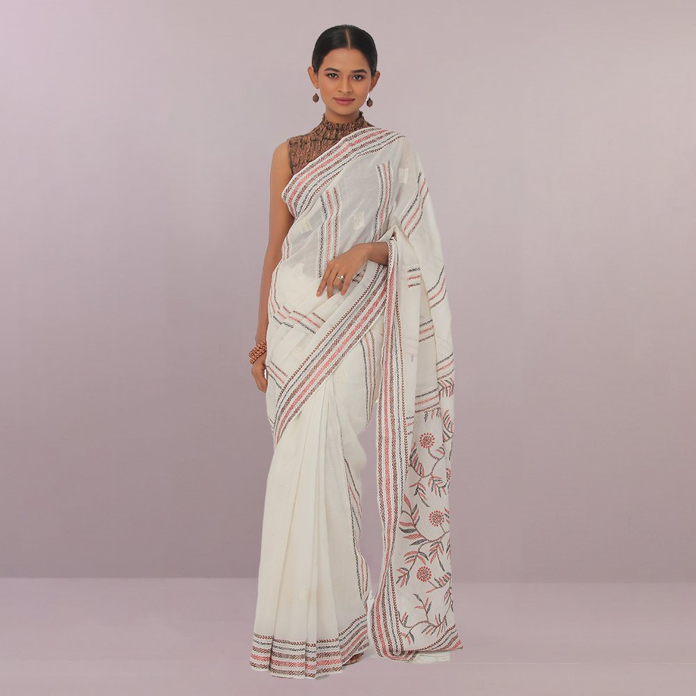 This snowy Kantha saree is presenting a fusion of natural colors, which is hand-stitched by using multi-color natural thread which gives it a Outstanding glance.