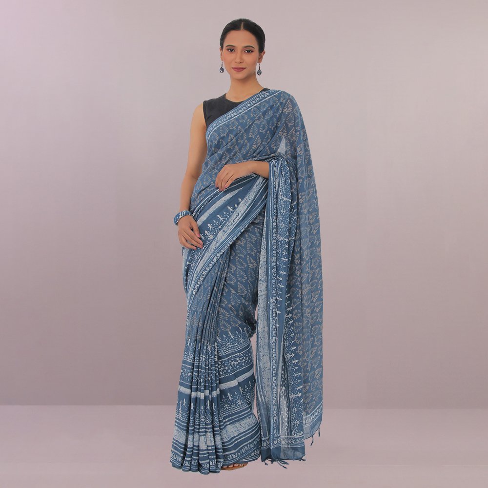 The preparation of indigo and the dyeing of cloths are other flourishing in this stunning Indigo Saree. this saree can give you charming moments at any time.