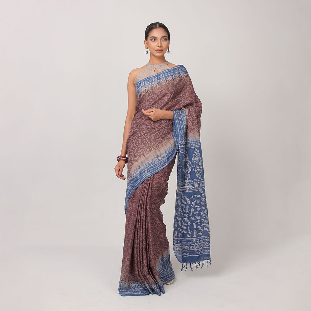 With an inspiration of earth color, this cotton saree is treated with natural treatment to make the lighter block print for an elegent look. All Aranya products are handmade, using natural materials, within a fair trade framework.