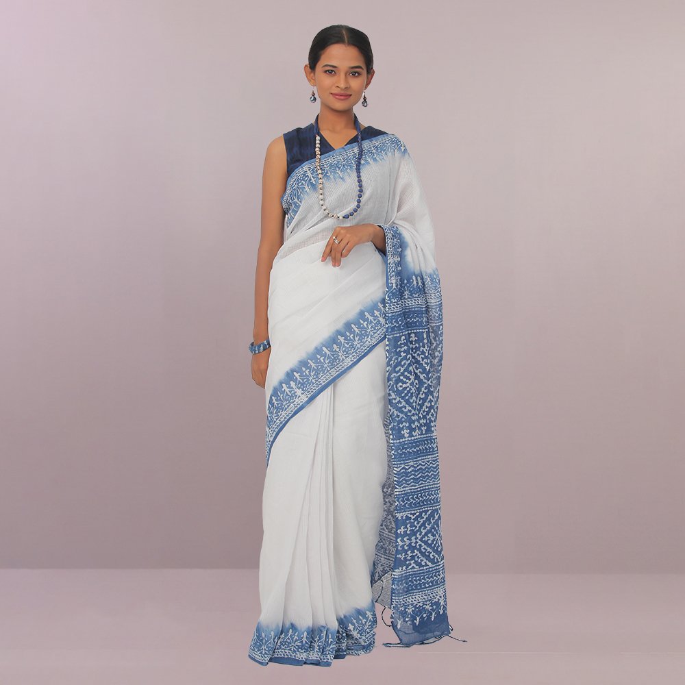 The preparation of indigo and the dyeing of are other flourishing in this stunning Indigo Saree. this cotton cotta saree can give you charming moments at any time.All Aaranya products are handmade, using natural materials, within a fair trade framework.”