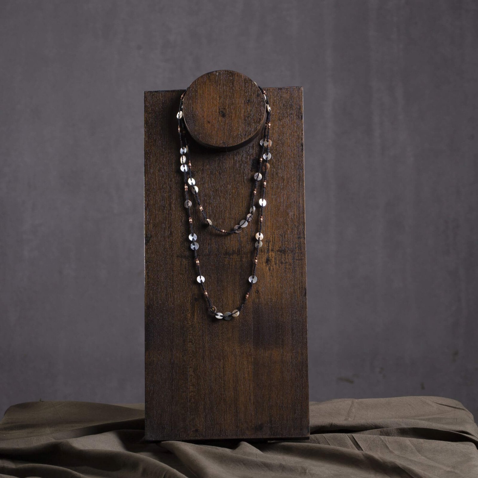 The necklace is handmade from beads. Multi colors are embedded using dye. All Aranya products are handmade, using natural materials, within a fair trade framework.