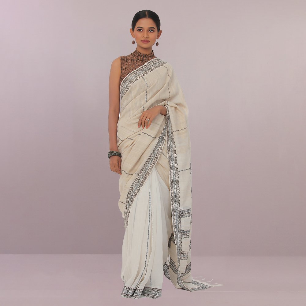 This undyed Kantha saree is presenting a fusion of natural colors, which is hand-stitched by using multi-color natural thread which gives it a